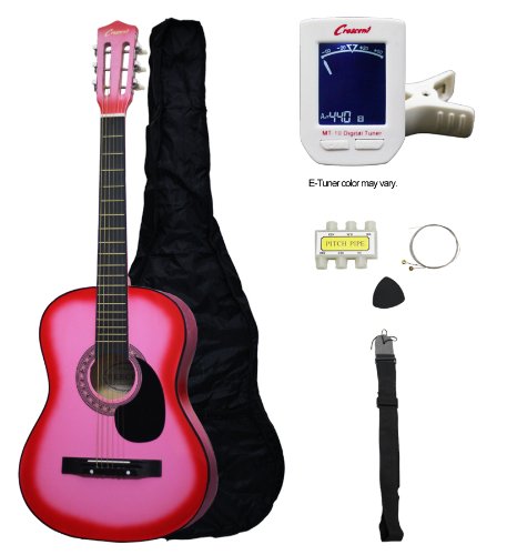 - Crescent MG38-PK 38" Acoustic Guitar Starter Package, PINK (Includes CrescentTM Digital E-Tuner)